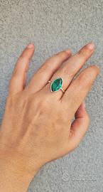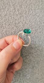 Anello argentato di bigiotteria, con pietra in zirconia cubica, colore verde. Misura 20 mm di diametro.