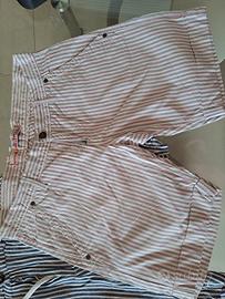 - Due bermuda a righe, uno blu e bianco leggero di lino marca Candida e uno rosa bianco e grigio di cotone marca amalloy.