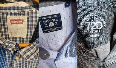 3 Camicie cotone uomo manica corta in diverse fantasie, poco indossate, Levi's (M), Enos & co (L), OVS (M).