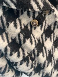 1) cappotto lungo 1/2 gamba motivo geometrico bianco nero un bottone doppio petto cin tasche