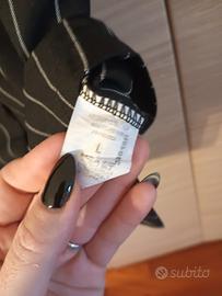 elegante e bellissimo, taglia L ma veste molto meno il pantalone, direi una S.