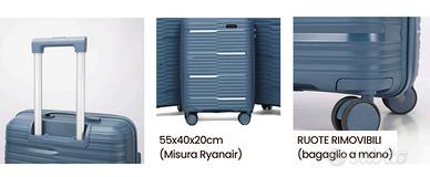 Set 3 Trolley POLIPROPILENE Fino a esaurimento scorte. Realizzato in polipropilene, dispone di carrello estraibile, chiusura con zip, impugnatura superiore e laterale (eccetto sul trolley cabina), fodera interna ispezionabile, separatatore abiti con tasca, cinghie di contenimento abiti, il trolley piccolo ha le ruote rimovibili che lo rende ancora piu' piccolo durante gli spostamenti in aereo, le maniglie sono certificate con test di resistenza di 800 volte. Dimensioni in cm: Trolley Grande 75x50x24 Trolley Medio 65 x 45 x 22 Trolley Cabina 55 x 40 x 20 - ruote incluse (5 cm) Siamo un Negozio con una lunga storia di commercio alle spalle. Rivenditori RONCATO e di numerose Marche di valige, presentiamo questo nuovo ottimo set HULIXE NPLE, dove rappresenta la giusta combinazione tra prezzo leggerezza e praticità abbinata ad un disegno colorato e estremamente visibile che fà di queste valige uniche nel loro genere offerte da noi ad un prezzo estremamente basso per combattere la crisi. E' il prezzo più basso del web...V E R I F I C A T E !!!! IL set è costituito da tre trolley in abs lucido di ultima generazione leggermente flessibili con manico superiore e laterale per le msiure piu grandi mentre solo superiore per il bagaglio cabina. Aste in alluminio leggere e resistenti con chiusura a combinazione numerica a tre cifre posta sul lato del trolley,interno tessuto foderato poliestere con elastici fermabiti e divisorio parziale con doppio gancio con ulteriore tasca a zip. Ruote di numero 8 che permettono grande stabilità e perfetta manovrabilità delle valige a 360 gradi. Contattateci senza esitazione per qualsiasi domanda o spiegazione. anche per Info Ingrosso baroneonline Tel 3924973061