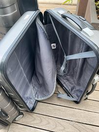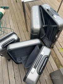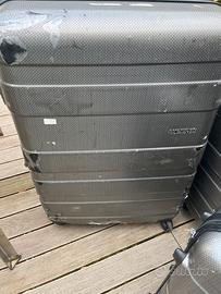 Set di 3 valigie American Tourister internamente perfette con combinazione funzionante solo la parte esterna della più grande è rovinata ma senza compromettere la resistenza della valigia. 1 valigia grande 1 media 1 trolley