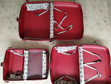Set 3 valigie rigide Samsonite che entrano una nell'altra, compreso beauty case. Con le chiavi e 3 porta abiti. Valigia grande 75x60x25, media 65x55x20, trolley 55x38x18. Uniproprietario. Zona EUR.