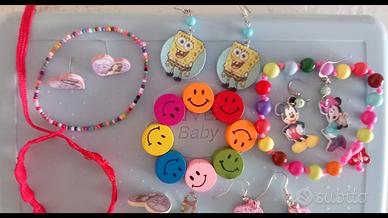 Set 4 braccialetti bambina con perline smile 5 paia di Orecchini in fimo artigianali fatti a mano Spongebob topolino peppa pig me contro te
