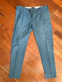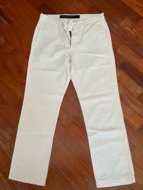 Vendo 1 pant. uomo Armani Jeans taglia 50 in cotone color jeans; 1 pant. uomo Peuterey taglia 50 in cotone color beige; 1 pant. uomo Peuterey taglia 50 in cotone color bianco; 1 pant. uomo Jaggy taglia 50 (34/34) in cotone color kaki. Trattasi di indumenti originali usati in ottimo stato. Non sono interessato a vendere i pezzi singolarmente