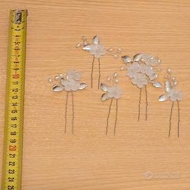 Set di 5 fermagli per capelli, decorati con fiori e perle. Finitura argentata. Ideali per acconciature da cerimonia o da sposa. Mai usati