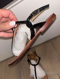 SANDALI NERI CON CRISTALLI STRASS PAILLETTES CUCITI A MANO, N.37; Produzione artigianale: strass sono cuciti individualmente a mano; Acquistate a 90 € ( dimostrabile)