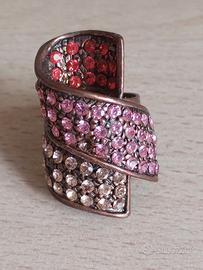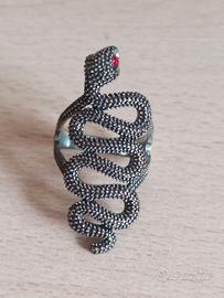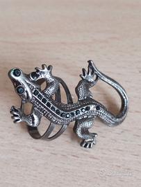 In vendita anello con brillantini rosa in 3 variazioni di colori, in buono stato, regolabile, come da foto. Mancano 5 brillantini sparsi, come si può vedere nelle foto. - In vendita anello con brillantini azzurri, buono stato, come da foto. Mancano alcuni brillantini, come si può vedere nelle foto, ma non viene comunque alterata la bellezza dell'anello. - In vendita anello con pietre e brillantini azzurri, decorato con foglie, come si può vedere nelle foto. Piccola ossidazione sul retro dell'anello, nel cerchio sul retro. misura: 19 mm. -In vendita anello a forma di Geko, con brillantini neri e uno bianco, in ottime condizioni, come da foto. L'anello è regolabile. -In vendita anello a forma di serpente con pietre rosse negli occhi, presenta alcuni segni del tempo. (18,1 mm.) - In vendita anello con brillantini rosa, nessun brillantino mancante, lieve ossidazione sulla parte color argento nel cerchio dell'anello, regolabile nella misura.