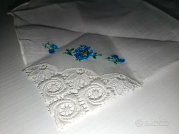 Set 6 fazzoletti in cotone bianco ricamati a mano