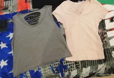Vendo tutto ciò che è nelle foto 7 pezzi euro 35,00 Il lotto include 2 jeans lunghi pull & bear usati 2 volte praticamente nuovi 5 top e tshirt alcune mai usate varie marche e modelli