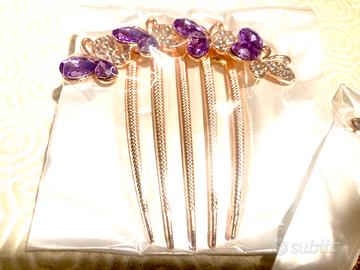 Set A - 2 pezzi Fermacapelli Pettini Coreani Modello a farfalla ali viola con strass Modello con perle e strass Dimensioni lunghezza circa cm 8