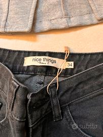 Set composto da 3 jeans nuovi,taglia small,narca kocca,Nice Thinghs,elasticizzati,coordinati a giacchina feloata grigia,marca mert taglia small,gelpa girocollo nrra ideale per la primavera.nessun difetto