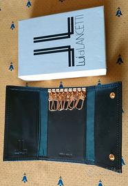 Set di accessori in vera Pelle composto da. Cintura da Uomo Nera Misura 110/125 mai usata firmata Manna Portachiavi Unisex Nero firmato Lancetti mai usato con confezione originaria Portafoglio da Donna Bordeaux firmato St-Studio come nuovo misure 14x10