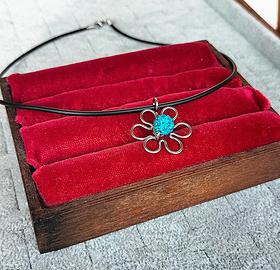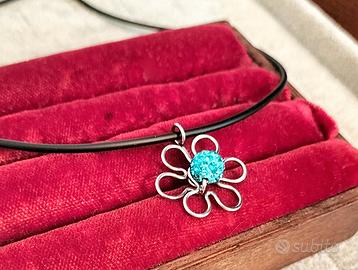 -Ciondolo collana a forma di fiore stilizzato con pietra centrale turchese