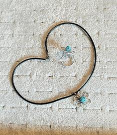 Bellissimo set coordinato composto da anello regolabile (si adatta a diverse misure) e collana con ciondolo (in caucciù) a forma di fiore con perla centrale turchese.