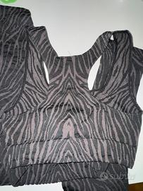 Set sportivo Fgm04, composto da leggings Push Up più reggiseno top, taglia unica. Mai indossato. Color grigio e nero.
