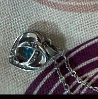 Maglia: Alternanza elegante di cuori in argento liscio e pietre blu rotonde (piccole sfere di colore intenso).