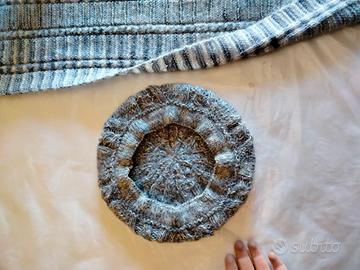 Cappello a Basco: Lavorazione a maglia con motivo a rilievo e bottone decorativo centrale. Caldo, avvolgente e dallo stile senza tempo.