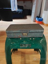 Gli accessori interni sono in condizioni eccellenti, molto lucidi e apparentemente poco usati. La custodia esterna presenta segni del tempo e alcune macchie dovute alla conservazione (visibili in foto), che ne testimoniano l’autenticità vintage.