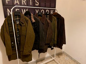 Sono disponibili diverse giacche vintage Barbour, appartenenti a epoche differenti. Si valuta la vendita sia singolarmente che in blocco. *Dettaglio capi riportati in ordine come visibile in foto da sinistra verso destra : 1. *Barbour Solway Zipper* – One Royal Crest (Royal Warrant anni ’70) Taglia C38 / 97 cm – Colore verde *Completa di cintura originale* 2. *Barbour International Suit* – One Royal Crest (Royal Warrant anni ’70) Taglia C38 / 97 cm – Colore nero *Completa di cintura originale* 3. *Barbour Beaufort* – anno 1996 Taglia C38 / 97 cm – Colore marrone 4. *Barbour Bedale* – anno 1989 Taglia C38 / 97 cm – Colore verde 5. *Barbour Beaufort* – anno 1996 (con pile interno) Taglia C44 / 112 cm – Colore marrone Tutti i capi sono originali e rappresentano modelli iconici del marchio, con particolare interesse per i pezzi One Royal Crest anni ’70, completi di accessori originali. Trattandosi di articoli vintage, presentano inevitabilmente segni del tempo e dell’utilizzo: non sono quindi paragonabili al nuovo, ma è proprio questa caratteristica a renderli unici e parte del loro fascino. Per ulteriori informazioni, foto o dettagli sulle condizioni, non esitate a contattarmi. Si richiede contatto solo se realmente interessati e consapevoli del valore degli articoli.