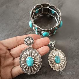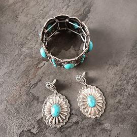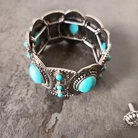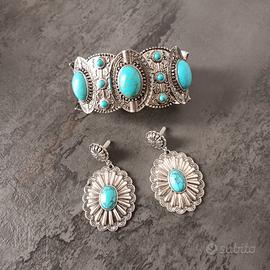 Set Boho Argento e Turchese: Bracciale + Orecchini