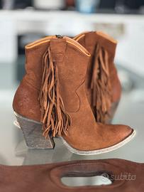 - Stivaletti texani scamosciati con tacco e frange