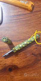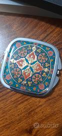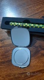 Set 4 pezzi: * specchietto 2 grandezze; souvenir viaggio in Turchia. * Lente d'ingrandimento graduata (cm 10), a forma di penna e con il classico fermaglio da taschino. Perfetta in borsetta per tutte le occasioni che non riusciamo a leggere le lettere troppo piccole sulle confezioni. * Penna chic che non passa inosservata, sprovvista di ricarica. Utilizzabile anche, per quando non si vuol prendere il portafoglio e ci serve del contante, come porta banconota arrotolata al suo interno. Mancante di una pietrina come segnalato in foto. * Porta monete con strass.