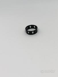 Anello nero con croci bianche: sottile, ma con carattere, ideale per un look alternativo o streetwear.