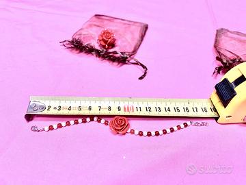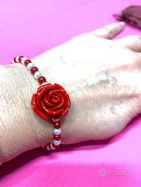 Set bigiotteria composta da bracciale e anello nuovi mai indossati, il bracciale ha perline bianche e rosse con rosa rossa. L'anello con rosa rossa è regolabile. Vendo anche singolarmente