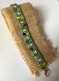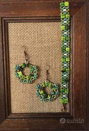 Elegante set artigianale in tonalità verde, composto da bracciale e orecchini, perfetto per un tocco di stile unico.