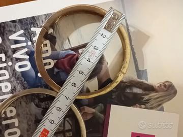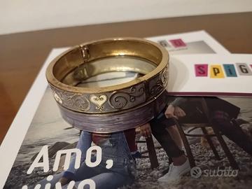 Set di 2 bracciali rigidi smaltati di colore indaco/azzurro lavanda. Apertura a molla/calamita. Quello con cuori nell'interno riporta il marchio SYL. Sono un regalo, acquistati presso il negozio vintage Spigo ma posti in vendita perché troppo stretti per il mio polso. Misure in fotografia. Condizioni e colori come da fotografie.