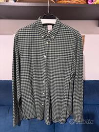 Le camicie quadrettate e quella bordeaux sono taglia L, mentre quella in tessuto chiaro e quella in jeans sono taglia M.