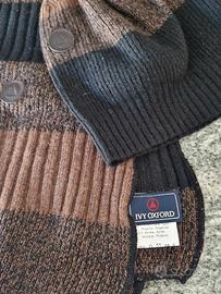 Set coordinato di cappello e sciarpa in maglia. - Design a righe con diverse tonalità di marrone e nero. - Logo applicato sul cappello e sulla sciarpa. - Materiale: Nylon, Acrilico, Lana - Da uomo