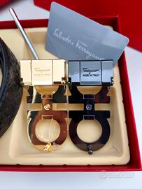 Set cintura Ferragamo con fibbie nero e oro nuova