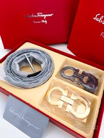 Vendo splendido set Salvatore Ferragamo, composto da: • cartellino Salvatore Ferragamo • 1 cintura in pelle (regolabile 110cm) • 2 fibbie intercambiabili, nei colori nero e oro • Elegante cofanetto Ferragamo • Shopping bag firmata Salvatore Ferragamo Condizioni: Nuovo, mai indossato. Ideale anche come regalo di classe! Taglia cintura: 110cm Regolabile (adatta alla maggior parte delle taglie, facile da accorciare) disponibili anche altre colorazioni e possibilità di acquisto in set.