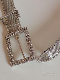 cintura metallica con strass lunga 100 cm abbinata a braccialetto diametro 6cm