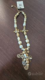 Set di bigiotteria collana e bracciale color bianco e oro. Lunghezza collana: 25cm cn diametro regolabile. Diametro bracciale: 9cm elastico.