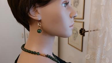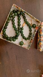 Una collana monofilo di giada, raffinata e preziosa, con chiusura in oro 18 carati, perfetta con gli orecchini in giada e montatura in oro. Chiusura come in foto