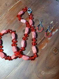 1) collana in pietra dura rosa e perline di cristallo rosso vintage anni 2000. Chiusura con moschettone. Lunghezza da chiusa cm. 26. In perfette condizioni.