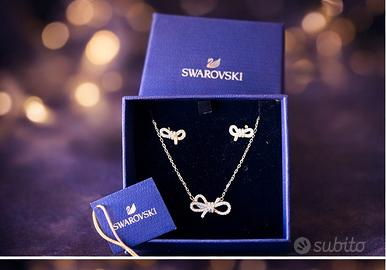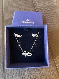 Set collana orecchini fiocco swarovski come nuovo completo di scatolo e cartificato dí autenticità