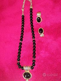 Collana di perle nere artificiali (non plastica, al tatto sono fredde) con pendente e orecchini a clips lunghezza cm 42