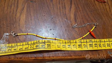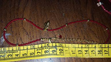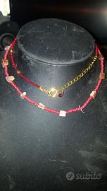 - choker - utilizzabile anche come bracciale - in perline di vetro (le dorate sono in plastica) e ciondolo in metallo;