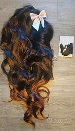 Set Cosplay Nezuko composto da: 1 kimono, 1 mantello, 1 cintura in vita, 1 parrucca Nezuko, 1 cordino in vita, 1 piccolo tubo di bambù, 1 forcina per capelli con fiocchi, 2 fasce per le gambe.