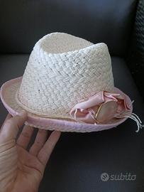 Set da mare composto da borsa di paglia con decori esterni e fodera interna, cappello di paglia con fiocco rosa, pareo da spiaggia fucsia.