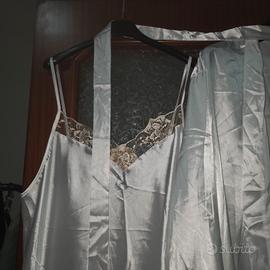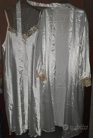 Set da notte donna 2xl camicia da notte + giacca + cinta spettacolare oro e bianco, nuovo (shein) c'e foto indossata