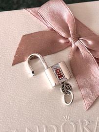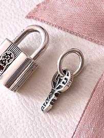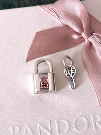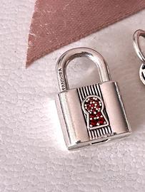 2 ciondoli pandora simbolo dell amore: lucchetto con cuore con brillantini colore rosso APRIBILE Chiave pendente che apre il lucchetto Scritta love