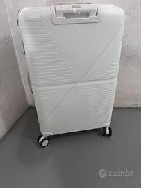 Dettagli del prodotto Nome prodotto: Set di 3 valigie trolley con 4 ruote Riferimento: M42103 Materiale: 100% polipropilene Caratteristiche principali: Dimensioni e capacità: Taglia S (cabina) Dimensioni esterne: 55x37x22 cm Dimensioni interne: 49x36x22 cm Capacità: 39 litri Peso: 2,5kg Taglia M (media) Dimensioni esterne: 67x43x27 cm Dimensioni interne: 60x43x27 cm Capacità: 68 litri Peso: 3,5kg Taglia L (grande) Dimensioni esterne: 77x50x30 cm Dimensioni interne: 70x49x30 cm Volume: 103 litri Peso: 4,4 kg Sistema a 4 ruote piroettanti: mobilità a 360° per movimenti fluidi e stabili. Sicurezza: dotato di lucchetto a codice integrato per proteggere i tuoi effetti personali. Interni spaziosi: include cinghie di fissaggio incrociate per proteggere il contenuto e gli scomparti organizer. Manico telescopico: regolabile in altezza per un comfort ottimale. Design durevole: realizzato in polipropilene, offre un'eccellente resistenza agli urti e una notevole leggerezza. Spedizione in tutta Italia o scambio sul posto