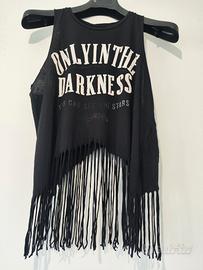 🖤 t-shirt nera con frange, stile casual e grintoso;