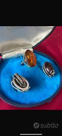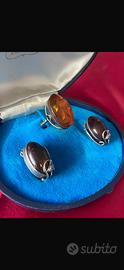 Bellissimo set composto da anello e orecchini d’ambra è di un colore aranciato intenso.